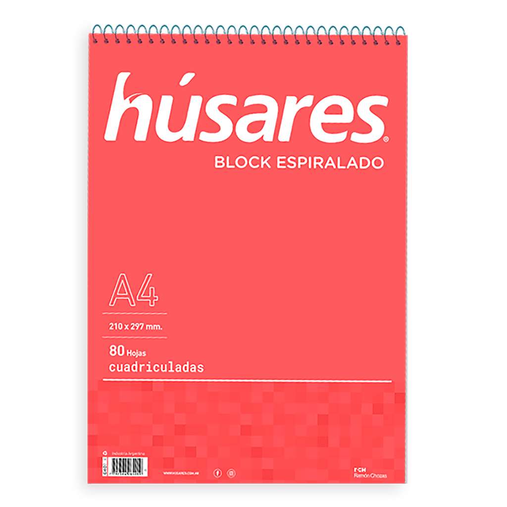 Inicio Librería Block Husares A4 Cuadriculado Espiralado 80 hojas